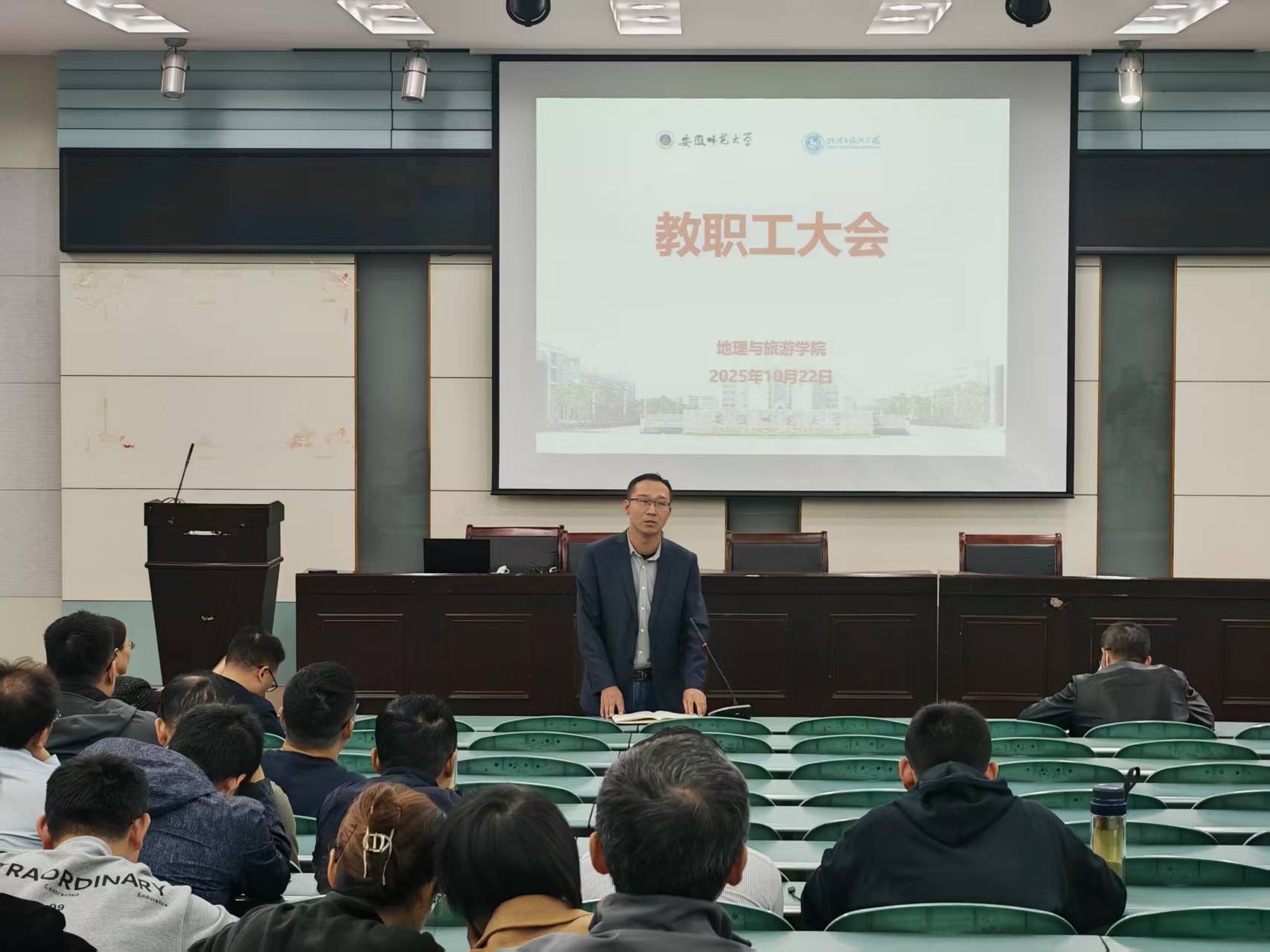 10月22日下午,必赢76net线路官网在学院实验楼101报告厅召开教职工大会,学院党政领导班子成员、全体教职工参加会议。会议由院长方凤满主持。