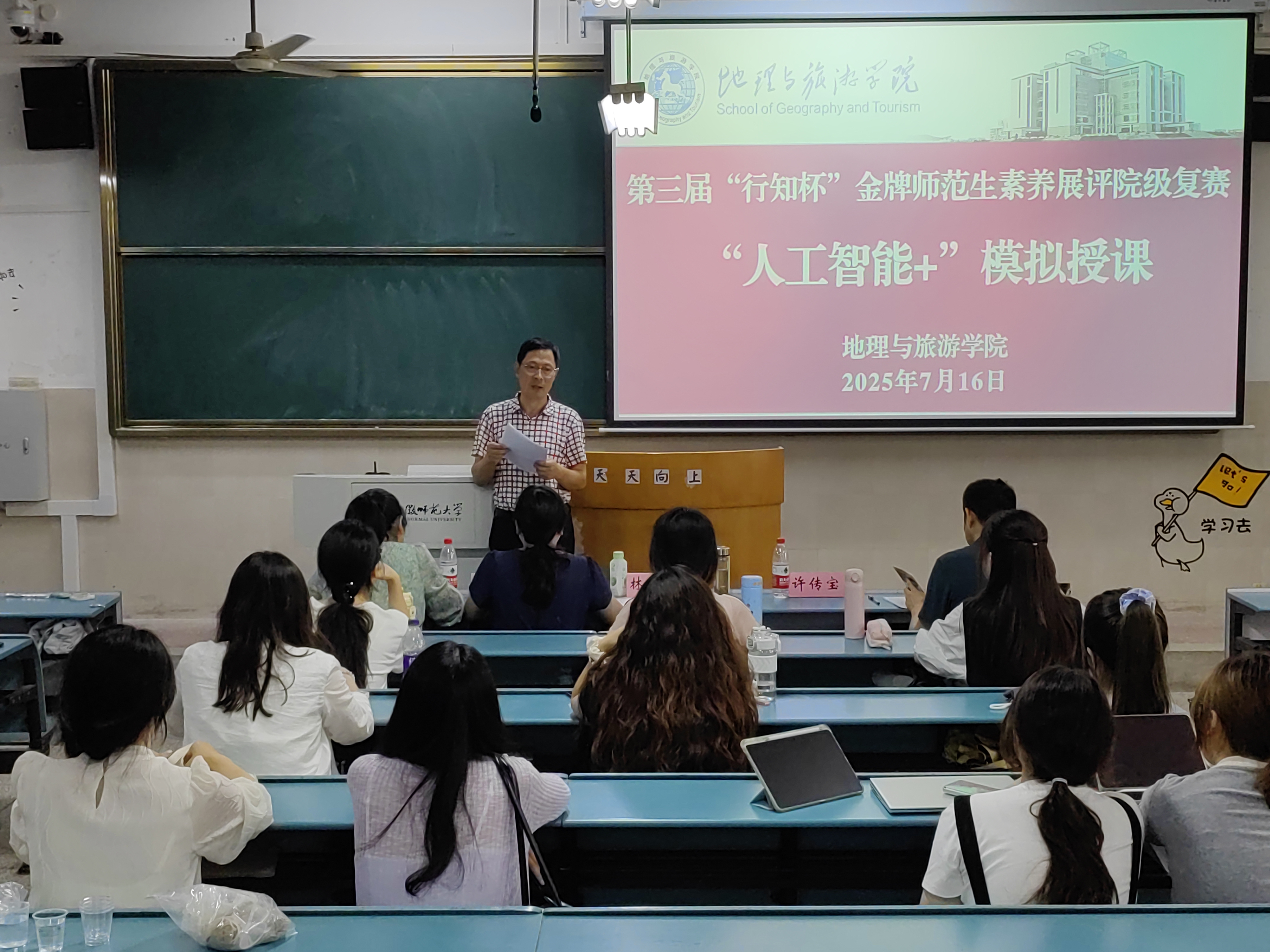 为进一步落实“基础教育振兴行动计划”,展示师范生暑期“小学期”“三金”工程工作成效,培养一批具备数字化教学设计理念和创新实践能力、适应“人工智能+”的高素质专业化基础教育教师,7月16日下午,必赢76net线路官网在学校行知楼2030302、2030303、2030304举行教学板书、教学教案以及“人工智能+”模拟授课、主题演讲展评院级选拔,马鞍山市红星中学年级部主任林章和、合肥市第一中学地理学科主任许传宝、合肥市第七中学地理学科主任程娣、淮南市第一中学姜静静等特聘教授、地理科学专业负责人、校内导师代表等担任评委。