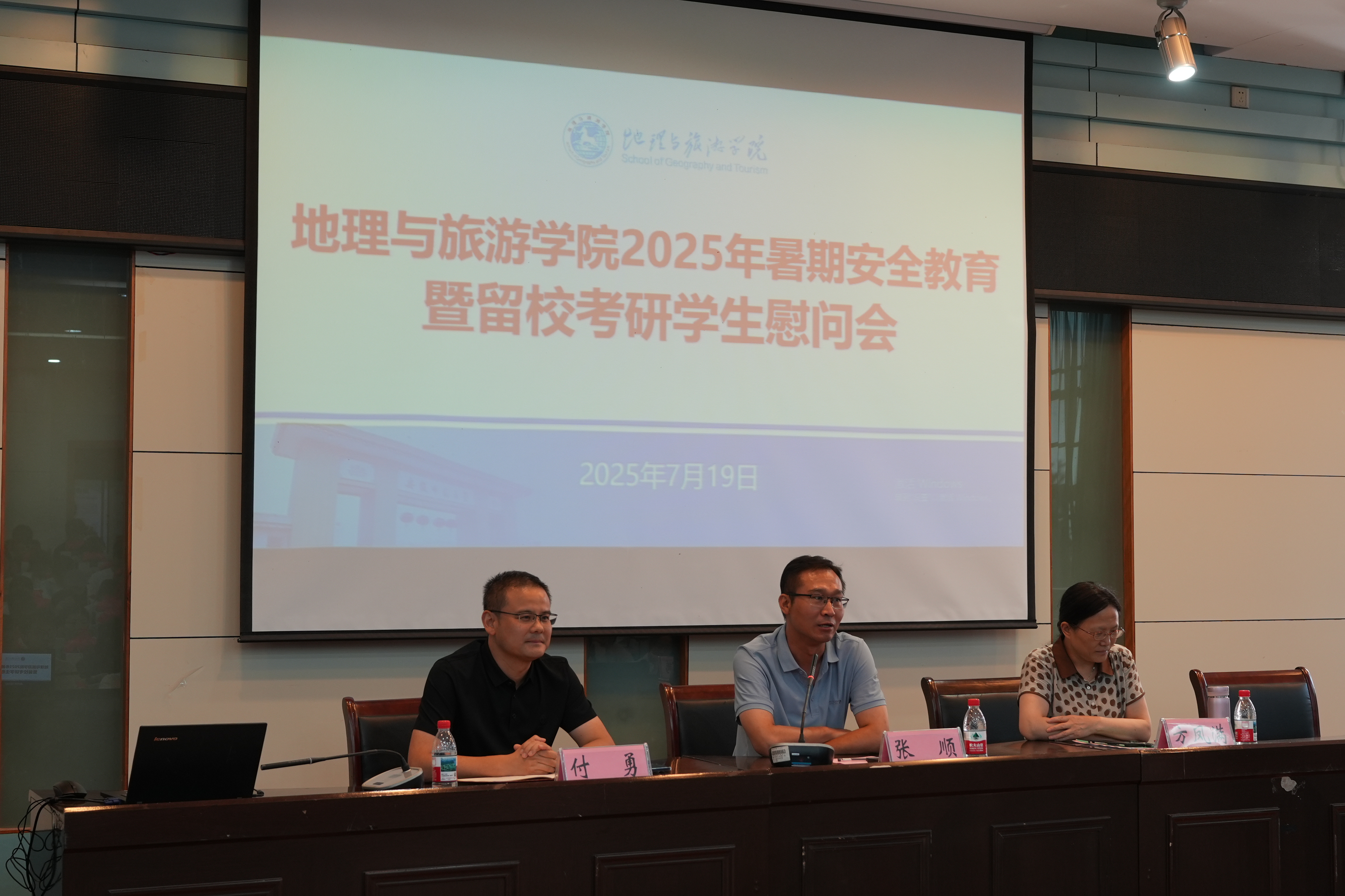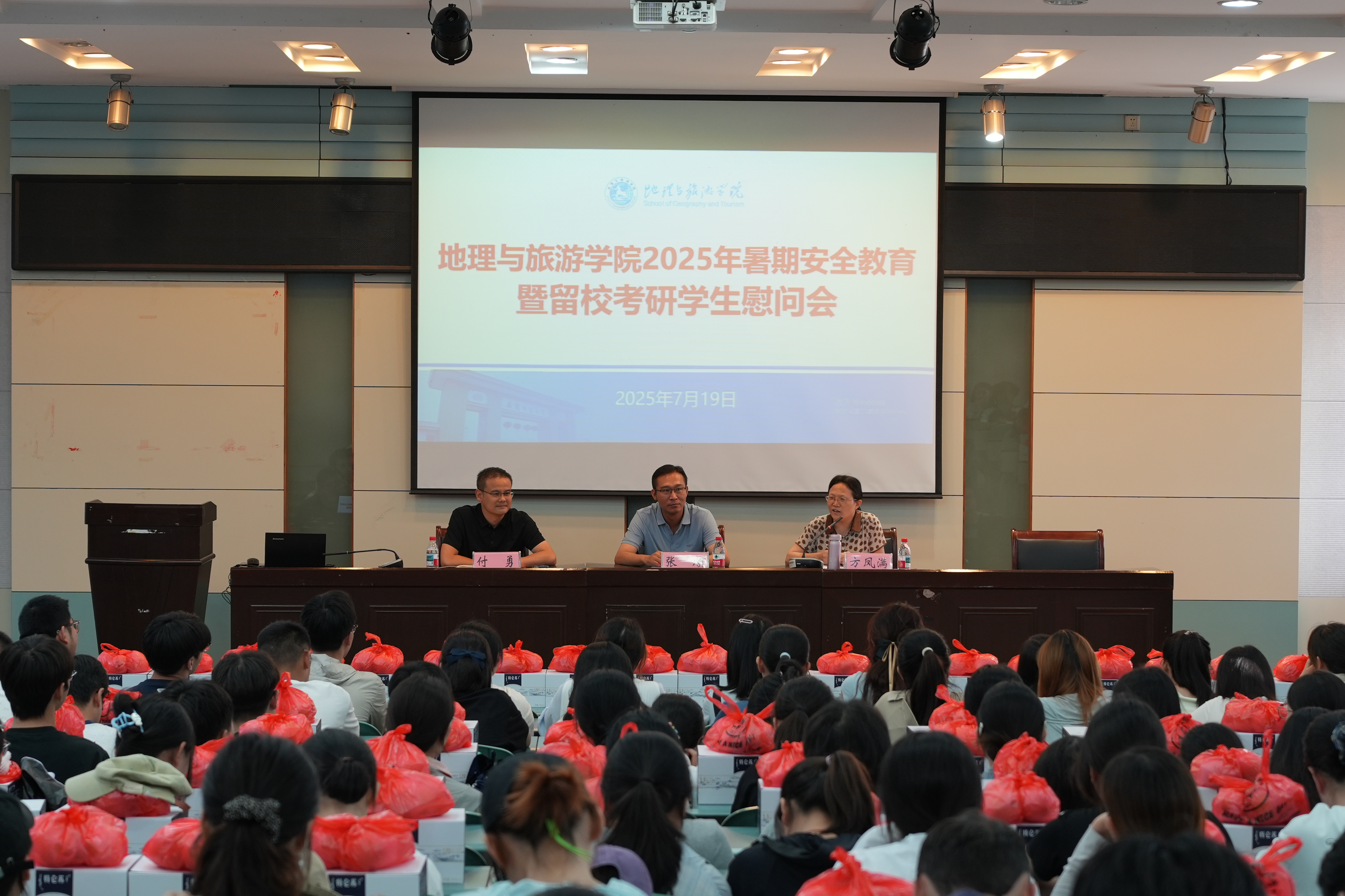 7月19日下午,必赢76net线路官网在实验楼101报告厅召开2025年暑期留校学生安全教育暨考研学生慰问会。学院党委书记张顺、院长方凤满、党委副书记付勇,2026届毕业生辅导员陈祥云,以及全体留校考研学生和竞赛集训学生参加会议。会议由付勇主持。
