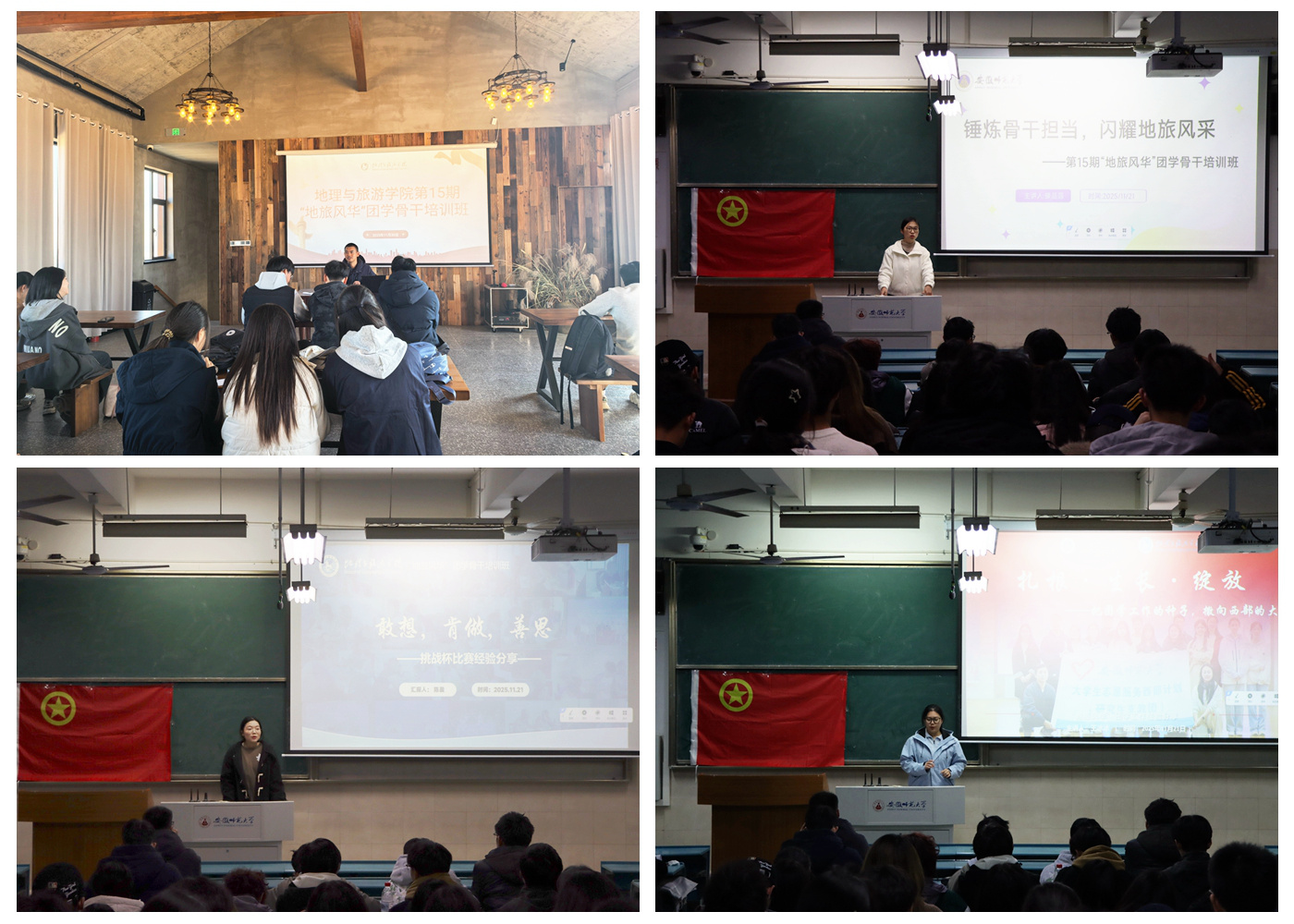2025年11月18至30日,必赢76net线路官网举办第15期“地旅风华”团学骨干培训班。院党委副书记钱程、院办公室主任陈健、院团委书记韦银艳、院团委副书记操晶晶参加教学活动,院团委、学生会骨干及各班级主要学生代表共同参与学习。