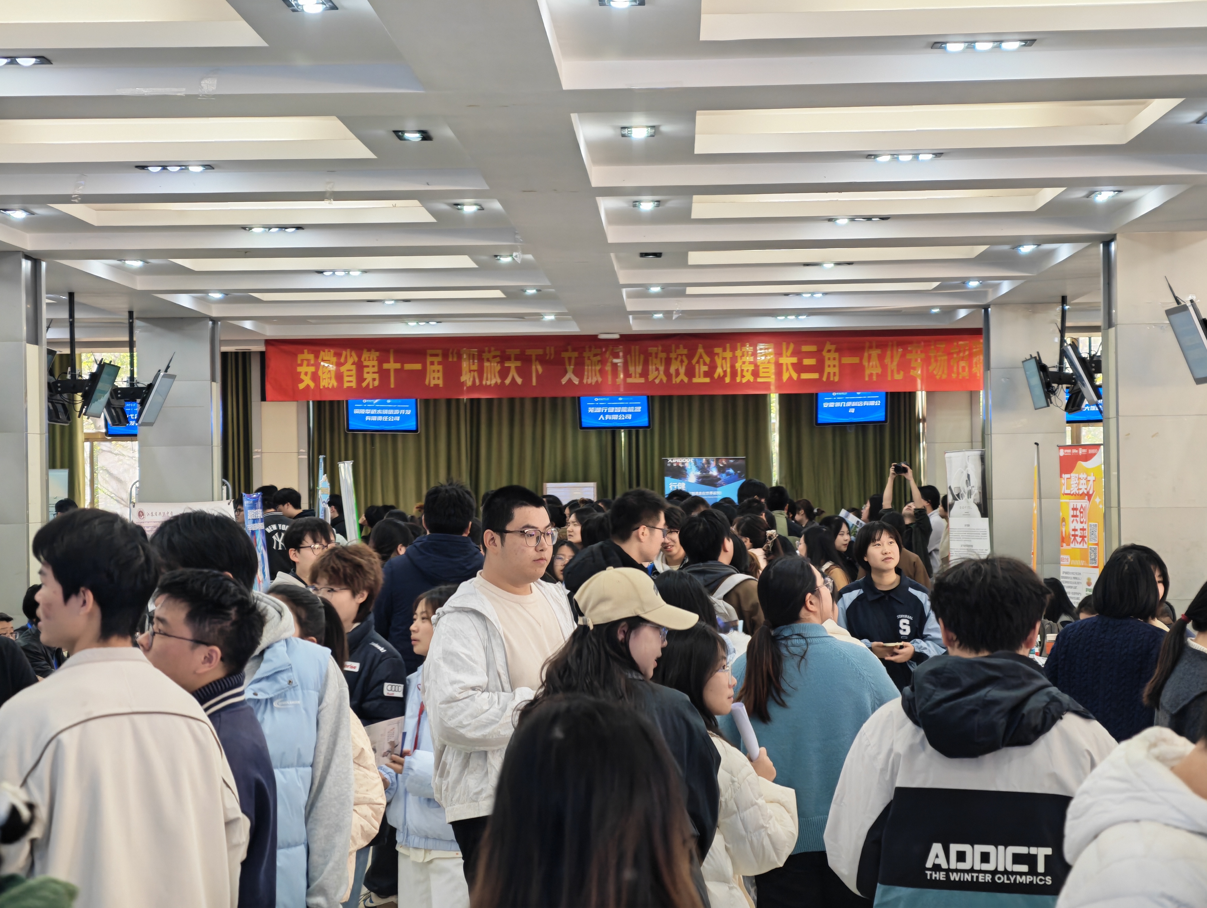 抓培养,优化能力提升。长期以来,学院坚持把提高学生就业能力作为重要抓手,积极整合各类资源,邀请优秀校友和合作企业来校开展学业导航和就业宣讲,打造了“职业经理人培育计划”“开始吧 青年元行”等多个校企协同育人项目,结合专业特色和优势,推出了 “职海扬帆”等学生就业品牌,近期顺利举办了安徽省第十一届“职旅天下”文旅行业政校企对接暨长三角一体化专场招聘会,吸引了来自全国各地涉及文化、旅游、教育、科技等多个门类的70家企业前来招聘,现场人潮涌动、气氛热烈。
