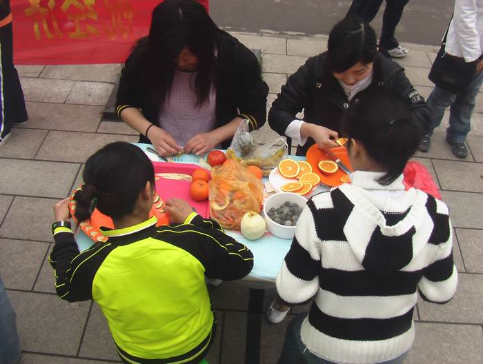 喜迎学校八十华诞,同为奥运奉献激情。2008年4月13日上午,由国旅学院学生会、经济管理学院学生会主办的“缤纷水果,五彩奥运”水果拼盘比赛在大学生活动中心门前隆重举办。