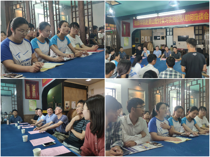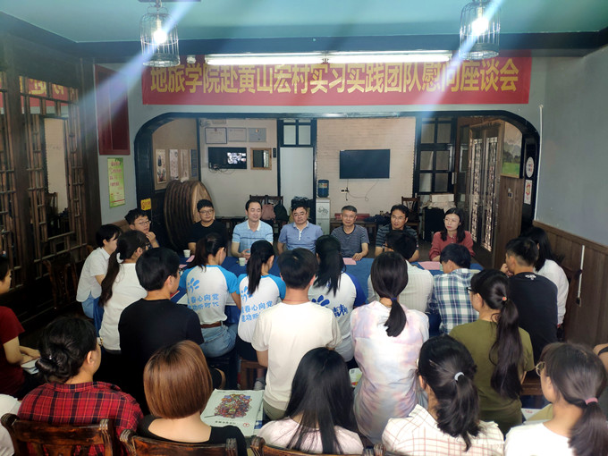 随后举行了地旅学院赴宏村实习实践团队慰问座谈会,会议由陈祥云主持。会上,陈祥云简要介绍了地旅学院2019年暑期社会实践活动基本概况;团队指导教师代表黄秋实汇报了实习实践活动开展情况;三支在黄山开展实践的团队代表韩萱萱、吕婧、程茜、孙若情汇报了团队基本情况及阶段性实践成果,并分享了实践心得体会;与会师生还围绕暑期社会实践中遇到的困难、收获的感悟等话题进行了深入交流。