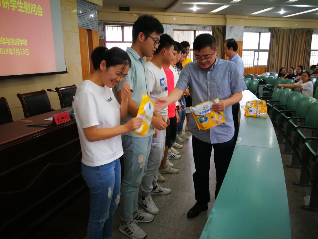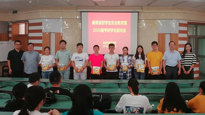 本网讯(地旅学院 陈健)为做好暑期留校学生的安全教育管理和为留校考研复习的同学加油鼓劲,7月13日上午,地旅学院在财务处二楼报告厅举行了暑期留校学生安全教育暨2020届考研学生慰问会。院长苏勤、院党委副书记乔静、院团委副书记陈祥云、毕业班辅导员以及2020届留校考研复习同学参加了本次会议。会议由辅导员陈健主持。