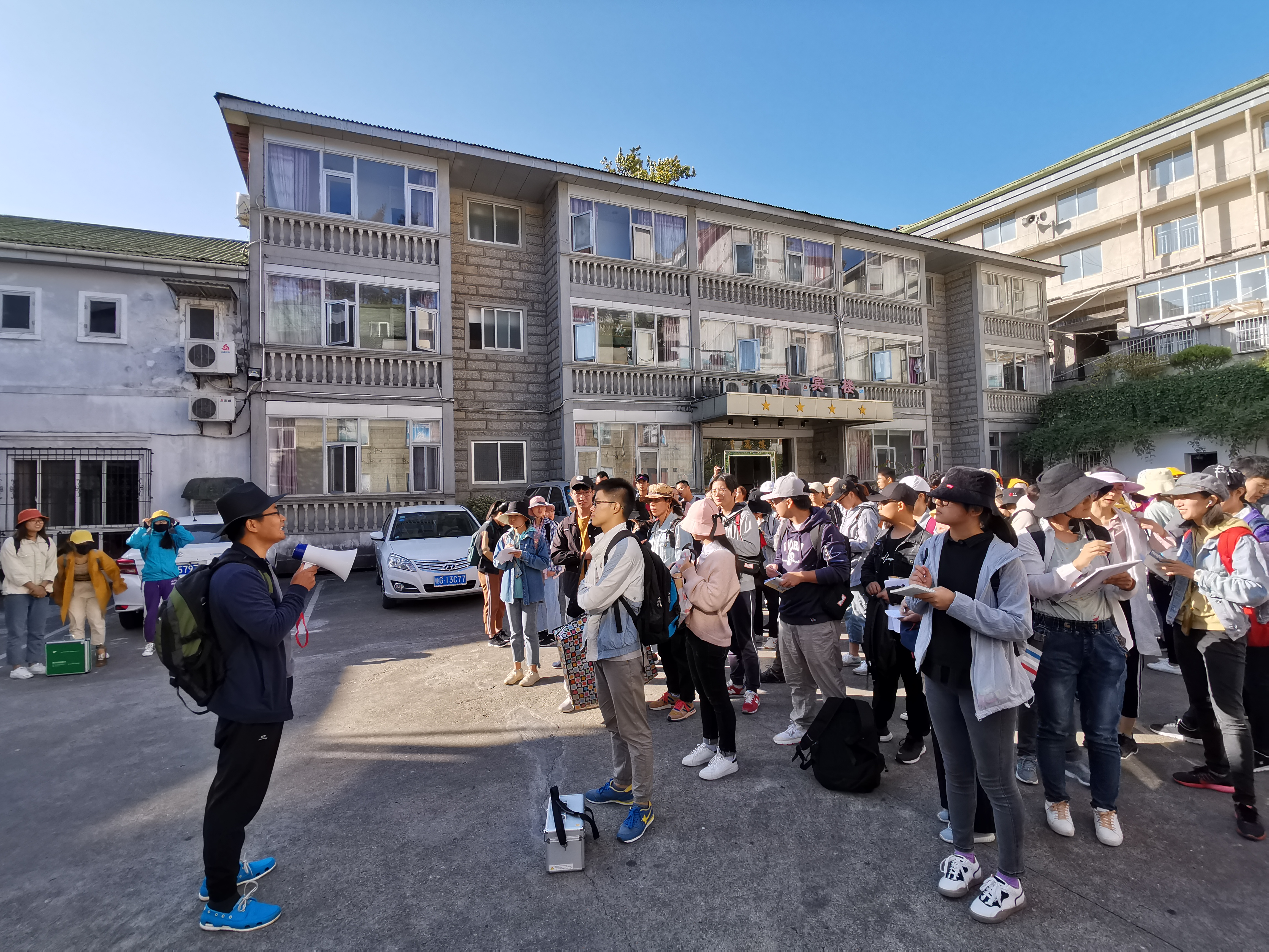 出发前,朱永恒等指导教师为同学们讲述实习内容与注意事项,同时叮嘱同学们注意安全,同学们认真聆听并记录要点。