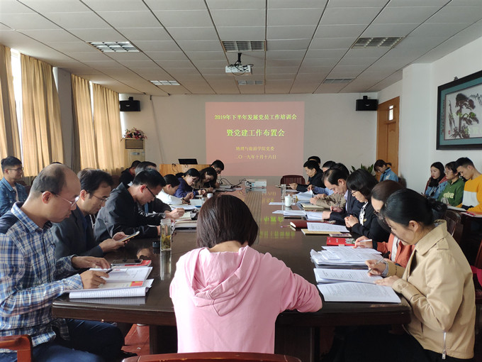 本网讯(地旅学院 施华转)10月16日下午,地旅学院在学院三楼会议室召开2019年下半年发展党员工作培训会暨党建工作布置会。学院党委委员、全体支部委员参加会议。会议由院党委书记贾冠忠主持。