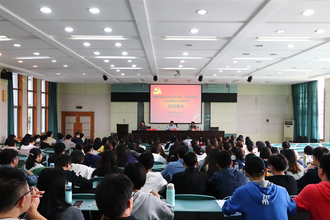 仪式在庄严的《中华人民共和国国歌》旋律中拉开序幕。班主任施华转宣读了《关于做好必赢76net线路官网2019年下半年大学生入党积极分子培训班工作安排意见》,明确了此次培训的任务、时间、内容和考核标准等。2018级旅游管理专业研究生牛明秀作为本次学员代表发言,她从自身学员的角度阐释了开设入党积极分子培训班的目的和意义,对分党校给予同学们学习和交流的机会表示衷心的感谢,同时她表示要严格要求自己,积极向党组织靠拢,争取成为一名优秀的学生党员。指导教师陶根苗对此次参加培训班的学员表示祝贺,并宣读了本期分党校班委名单。最后,院党委书记贾冠忠讲话,他对同学们能参加此次培训表示祝贺,他号召全体学员要珍惜此次系统学习培训的机会,认真学习党的基本知识、党的基本理论、党的光辉历史,通过学习强化理论武装,树立正确政治理念,提高思想政治素质;通过学习,牢记党的初心使命,坚定理想信念,践行全心全意为人民服务的宗旨,努力端正入党动机;通过学习,不断增强“四个意识”、坚定“四个自信”、做到“两个维护”,用自己的实际行动争取早日加入到党组织中来。