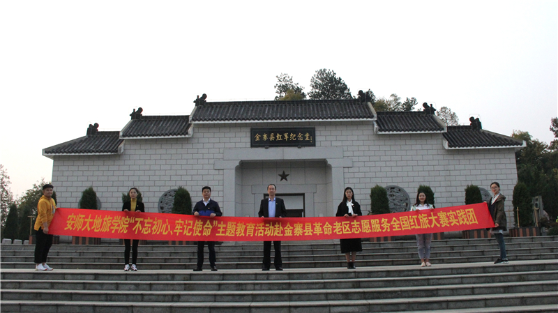 本网讯(地旅学院 陈祥云)2019年11月2日-3日,地旅学院党委副书记乔静、酒店管理专业负责人尹寿兵、院团委书记陈祥云、辅导员黄世彤一行,携学生党员和入党积极分子等一行赴六安市金寨县开展“不忘初心、牢记使命”主题教育,志愿服务第九届全国大学生红色旅游创意策划大赛,获得了文化和旅游部、安徽省文化和旅游厅等单位领导的一致好评。