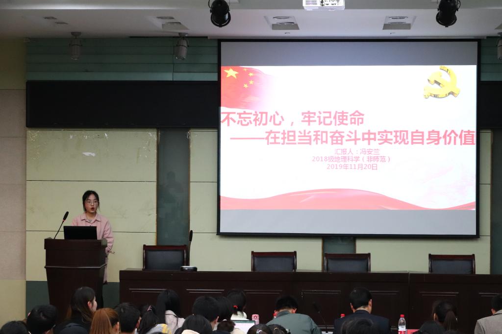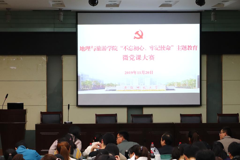 本网讯(地旅学院 杨茜冉 齐小学)11月20日晚,地旅学院在实验楼101报告厅举行“不忘初心、牢记使命”主题教育微党课大赛。院党委副书记乔静,各本科生党支部书记、辅导员等参加活动并担任评委,学院第28期(校第59期)入党积极分子培训班全体成员现场观摩学习。