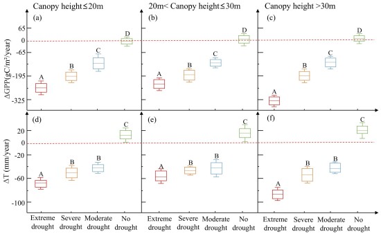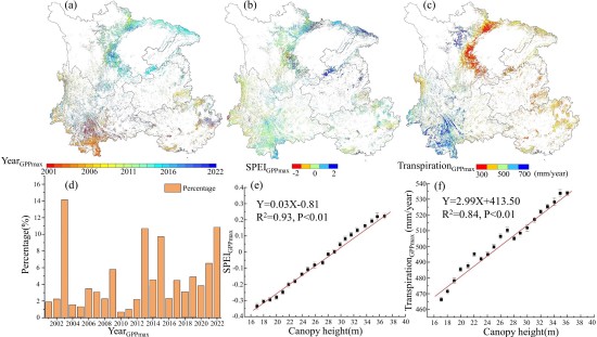 徐培培及其合作者利用多源遥感数据,通过机器学习算法、长时序数据分析等方法探求了森林总初级生产力(GPP)对干旱的响应特征及其与冠层高度的关联,从碳水循环的角度揭示了不同冠层高度森林对干旱胁迫响应存在差异的机理。这项研究不仅有助于更好地评估和预测干旱对森林碳汇功能的影响,也可以为森林管理政策的制定以及森林生态过程模型的参数优化提供科学依据。研究成果得到了国家自然科学基金、安徽省重点研究与开发计划项目的支持。