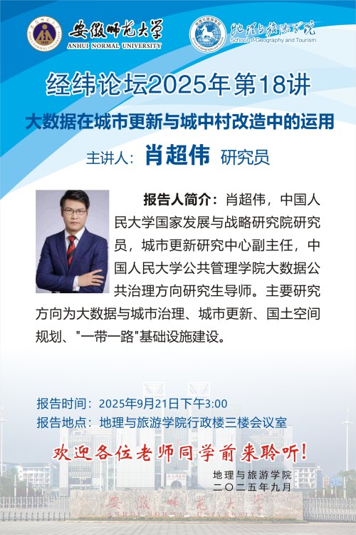 【学术预告】经纬论坛第85讲: 大数据视角下高校毕业生居住迁移的时空特征及影响因素