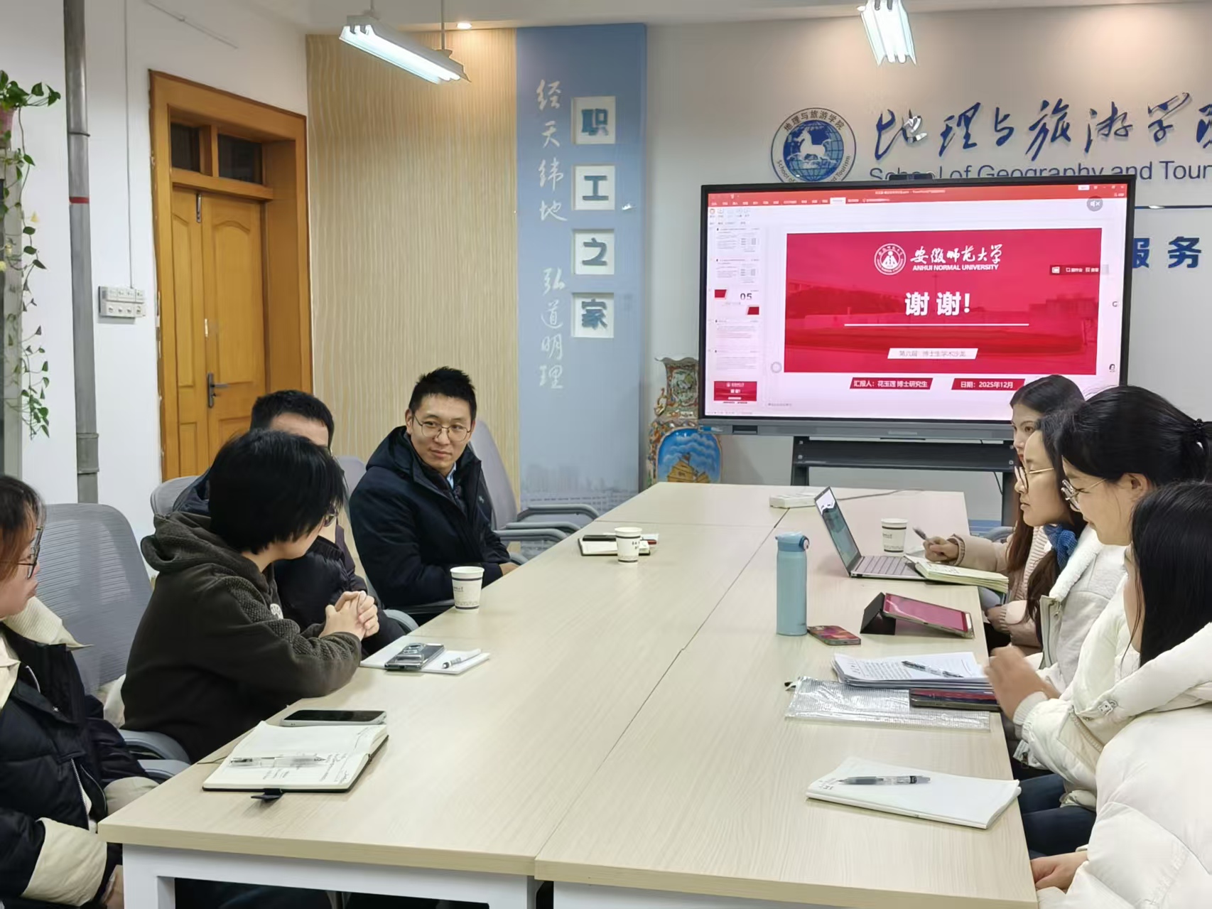 2025年12月24日下午,必赢76net线路官网举办了安徽师范大学第六届博士生学术沙龙。活动邀请两位博士研究生许海锋和花玉莲进行学术报告,孙鹏教授及学院研究生参加了此次学术交流活动。
