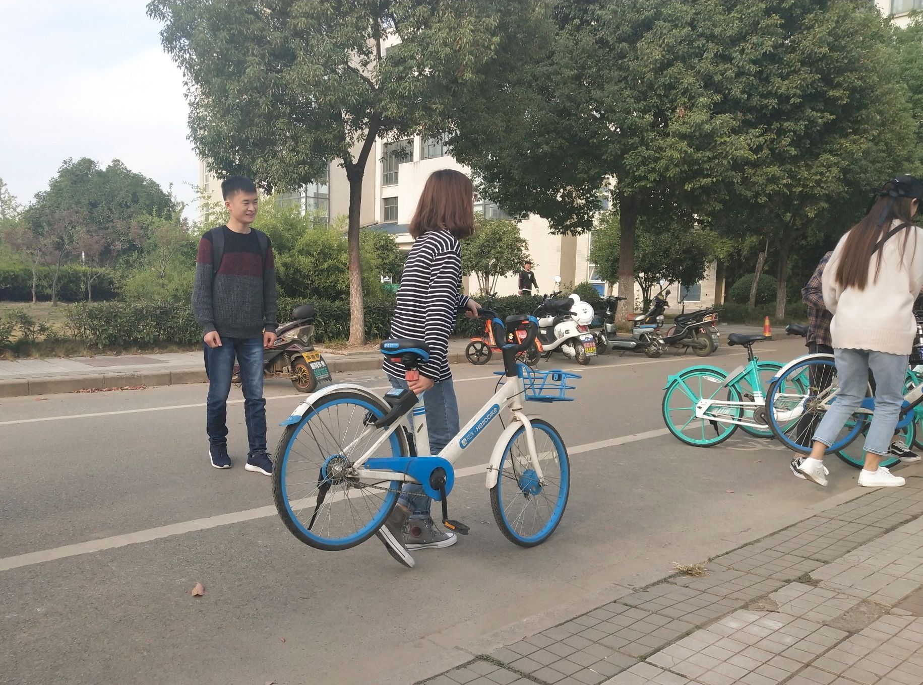 本网讯(地旅学院 田思琦)为了积极响应学校和学院团委的号召,开展班级团日实践活动,也为了让同学们增强维护校园环境的意识,加速和加深彼此之间的认识与了解。2018年10月13日下午,地旅学院18级旅游管理专升本一班的同学们在师大校园内进行了一次以“整理校园乱停共享单车,保持师大校园美丽整洁”为主题的团日活动。活动由班委策划,在班长刘韵扬和组织委员张玉玲的组织下展开。