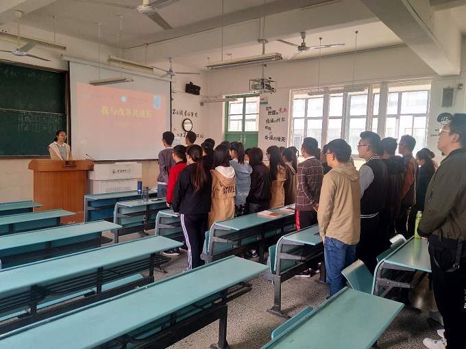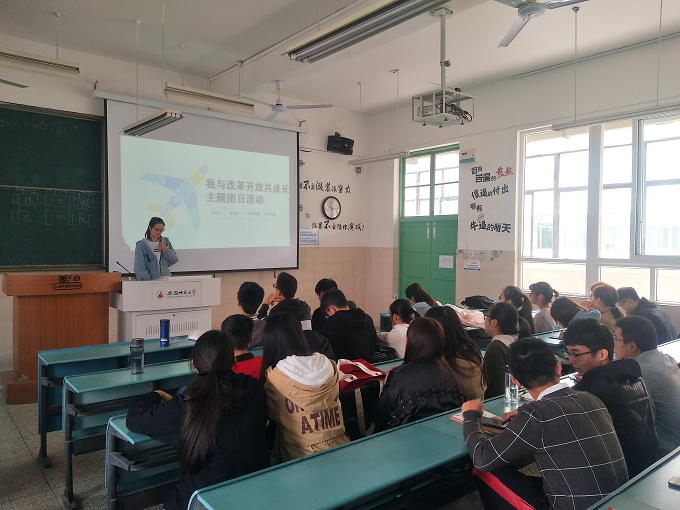 本网讯(地旅学院 王健)为深入学习宣传贯彻习近平新时代中国特色社会主义思想和党的十九大精神,引导广大团员青年回顾四十年来我国改革开放走过的伟大历程和取得的巨大成就,展示青年蓬勃向上的精神风貌,凝聚起实现伟大中国梦的青春力量,进一步提升学校基层团支部活力,10月19日必赢76net线路官网2017级土地资源管理“我与改革共成长”主题团日活动在行知楼2050403教室举行。全体土地资源管理专业同学参与,卢雨佳、高航、宫园、罗耀以及周翔同学进行演讲。