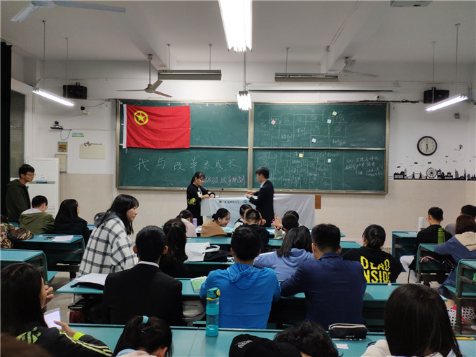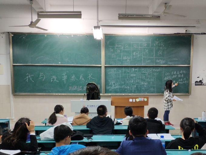 活动开始,吕宝成向全班同学展示了改革开放40年的变化,让每位同学直观地感受到改革开放给中国人民带来的巨大影响。随后,吕宝成向全班同学介绍了两部与改革开放的影视作品——《历史转折中的邓小平》《北方大地》,并且播放短视频《5分钟沙画了解改革开放四十年》,加深了同学们对改革开放这一伟大决策的理解。