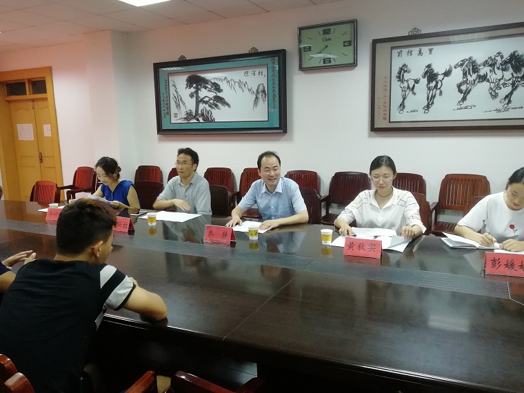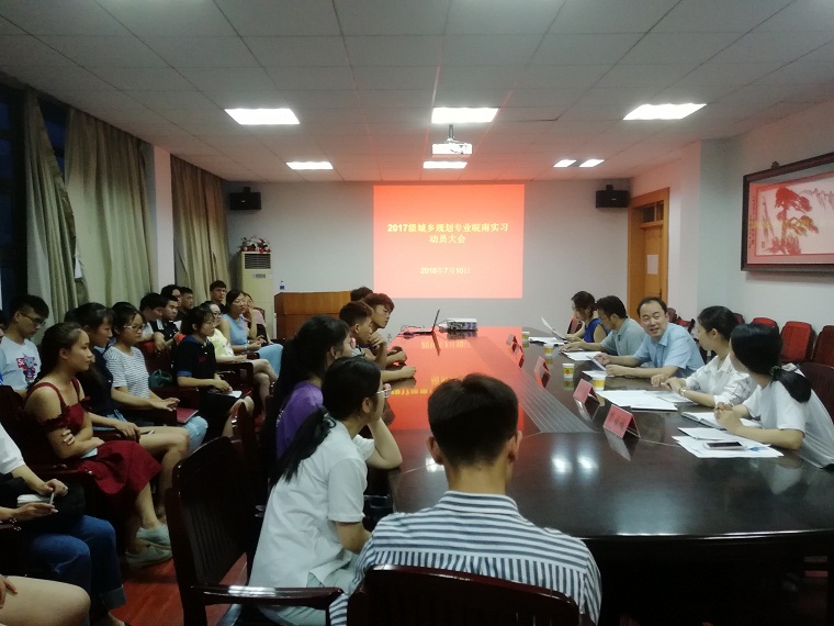 本网讯(彭媛媛) 2018年7月15日,2017级城乡规划专业皖南实习动员大会在地旅学院行政楼三楼会议室召开,出席会议的有城乡规划专业系主任杨兴柱,院党委副书记乔静,城乡规划专业教师李婷君、黄秋实,以及城乡规划专业辅导员彭媛媛及2017级城规专业全体学生,会议由黄秋实主持。