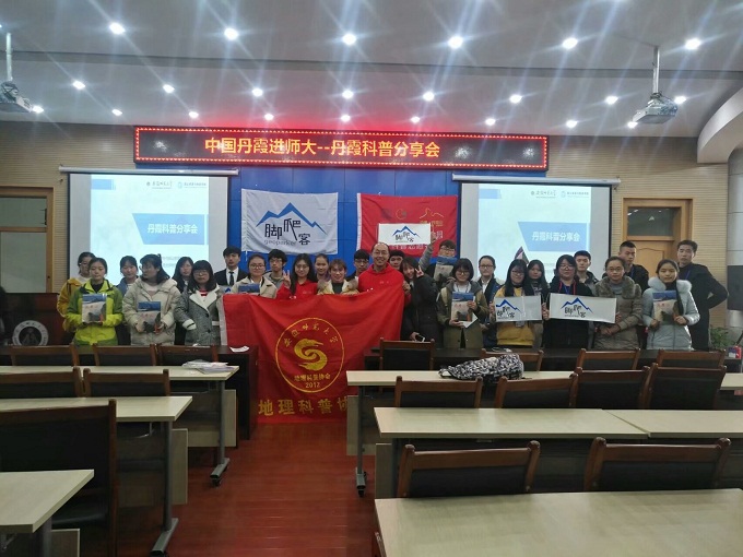 本网讯(地旅学院 杨玲 秦婷婷)3月21日下午,“中国丹霞进师大——丹霞科普分享会”在安徽师范大学花津校区圆形报告厅成功举办。此次分享会由广东韶关丹霞山世界地质公园主办、安徽师范大学地理科普协会承办、脚爬客志愿者社区协办,必赢76net线路官网副教授吴立、赴广东韶关“探秘岭南·科普丹霞”实践团队代表、丹霞山全国科普志愿者杨玲及地理科普协会240余名会员参加了此次科普分享会。