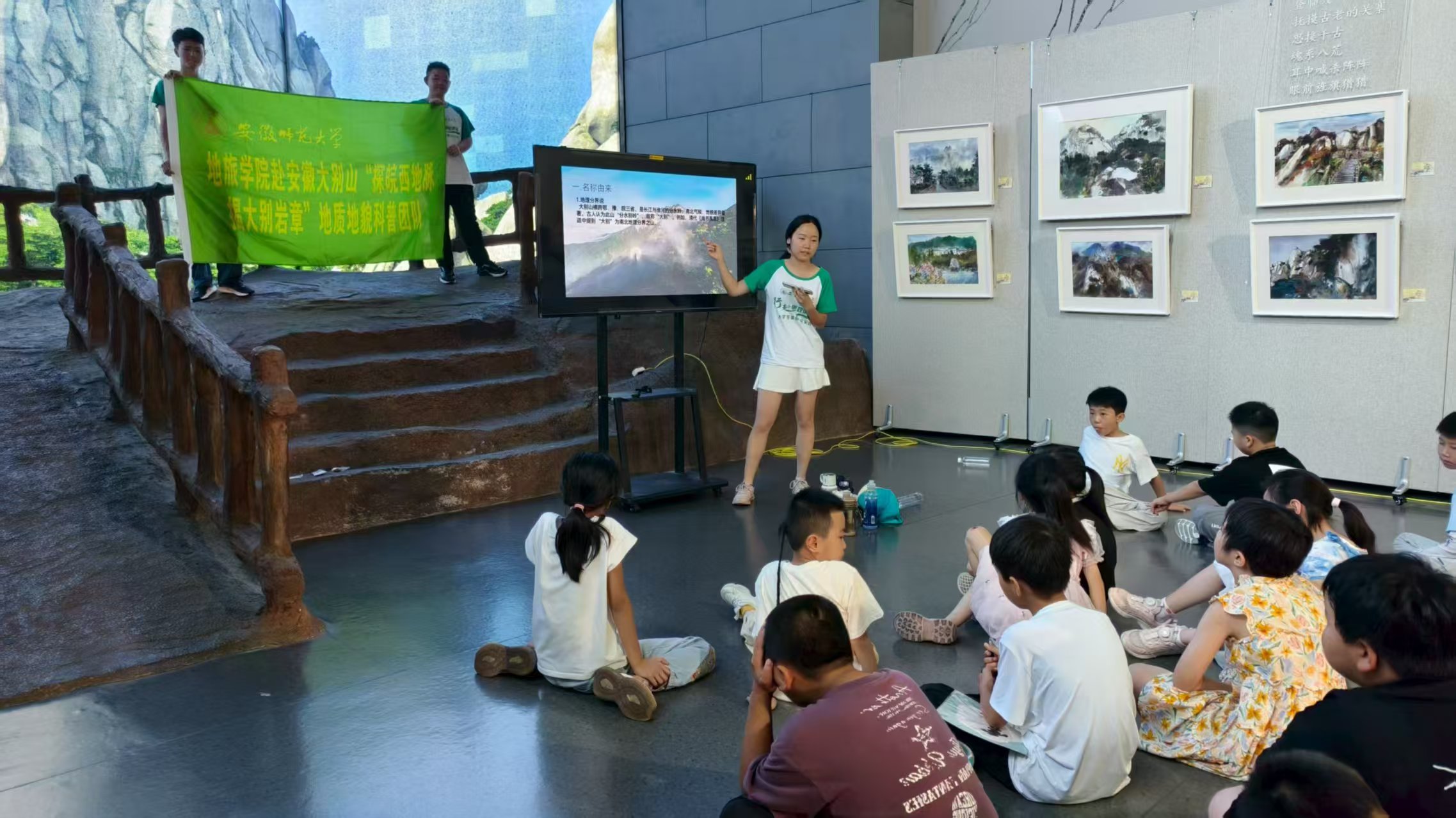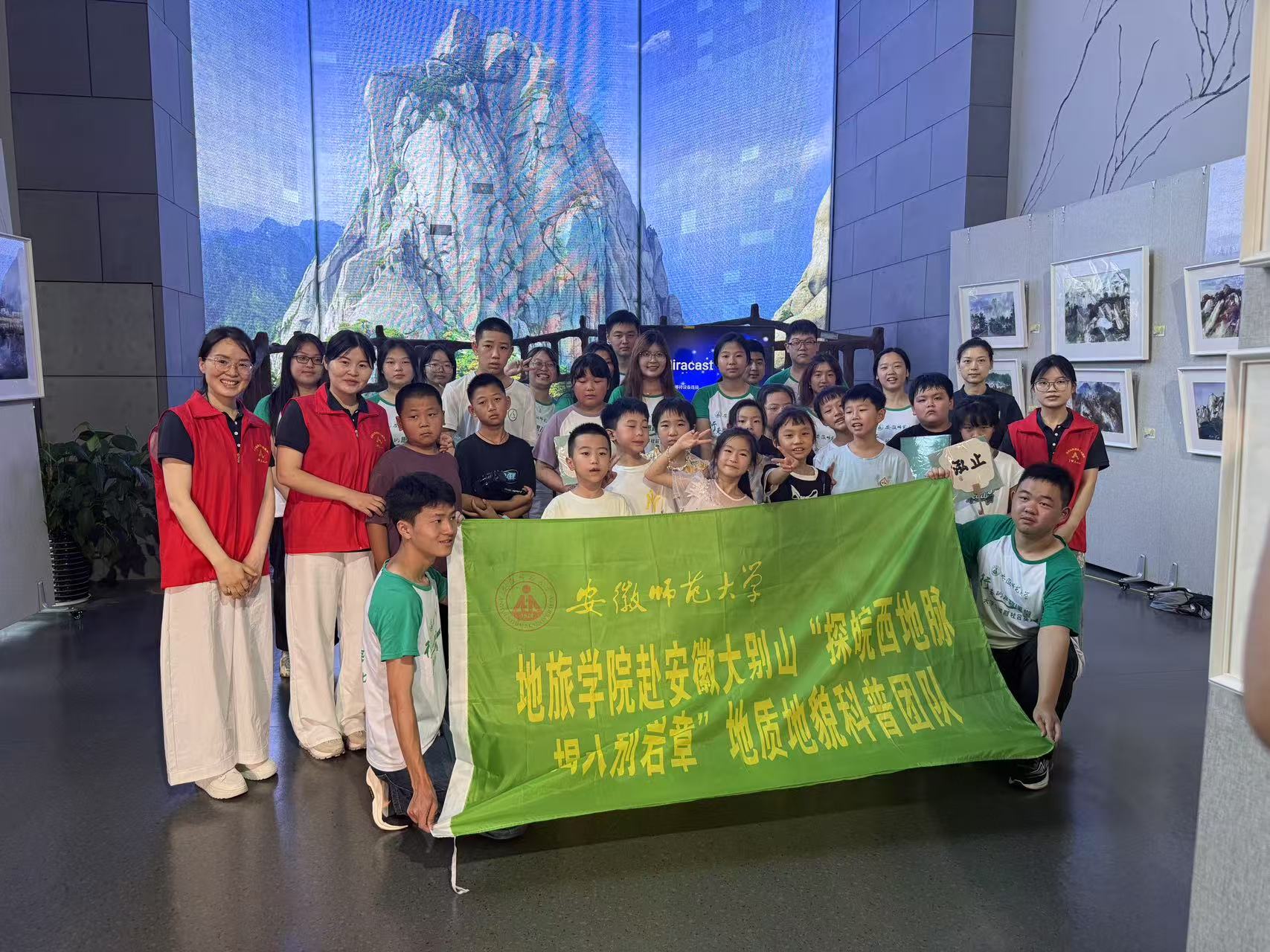 7月7日上午,安徽师范大学必赢76net线路官网赴安徽大别山“探皖西山脉,揭大别岩章”地质地貌科普团队走进天柱山博物馆,为当地小学生带来了一场生动有趣的天柱山地质地貌科普课。此次活动也为团队的暑期社会实践画上了圆满的句号。