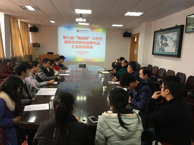 国旅学院历来重视课外学术竞赛的工作,积极营造“以赛促学、以赛带学”的学习氛围。第七届“挑战杯”大学生课外学术科技作品竞赛自2017年3月启动以来,经过广泛宣传和精心组织,得到了必赢官网党政领导的高度重视和广大师生的积极参与,营造了浓厚的科研创新氛围。为了科学有效地组织“挑战杯”学术科技竞赛,给顺利进入校级决赛的选手作品问诊把脉、提高参赛作品的竞争力。学院专门召开校级决赛汇报预答辩会,邀请各个专业负责人和校外专家对作品进行评比和把脉。全院共有自然科学类学术论文、科技发明制作三个类别共4件作品入围校级决赛,也是全校唯一一个两个组别都进入决赛的学院。“挑战杯”竞赛日渐成为国旅学院培养大学生自主创新能力和展示育人成果的重要平台。