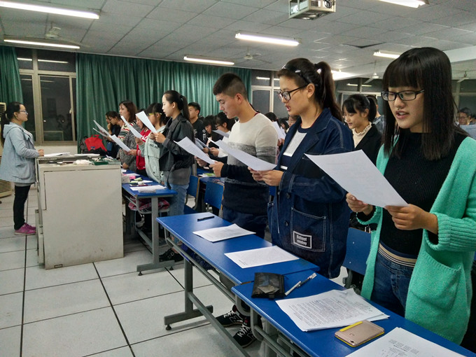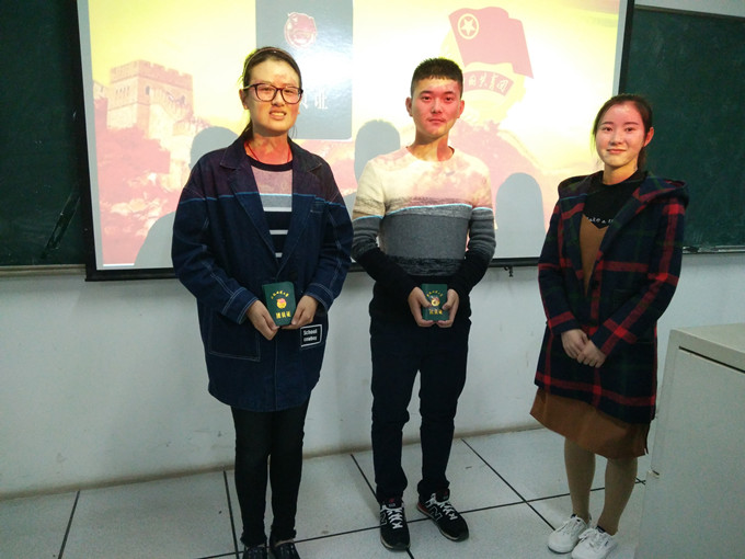 活动伊始,两位团支书分别说明了此次活动召开的目的,并强调其严肃性和重要性而后,同学们在大艺团工作人员的带领下学唱了团歌校歌。同学们精神饱满,现场气氛其乐融融。接下来,两位团支书又为大家简要介绍了团情团史,旨在帮助同学们巩固和树立学团史·知团情·跟党走的政治思想观念。团徽团员证“三证颁发”仪式也相继举行