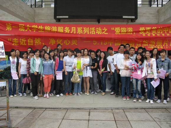 519日中午,为响应第二个中国旅游日,突出专业特色,展现学子风采,旅游爱好者协会携手1011级旅游管理专业于大学生活动中心广场,共同举办“走近自然,净化心灵”——“5.19中国旅游日”暨心理健康主题教育活动,院团委书记施华转也应邀参加活动。