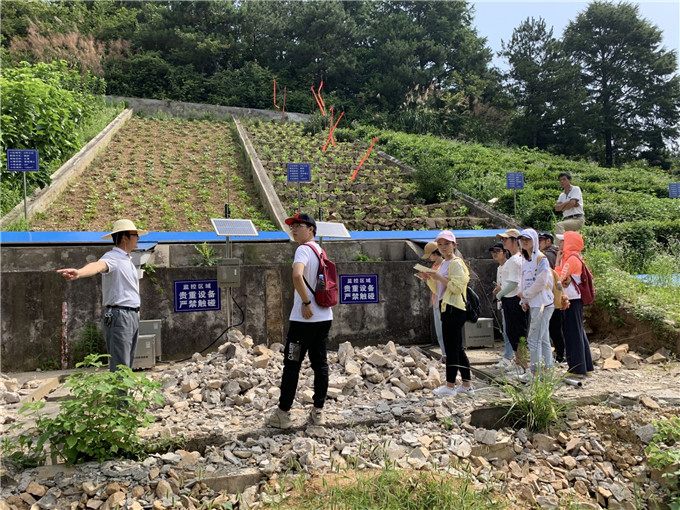 上午,汪军红给团队成员介绍了霍山县水土保持试验站的历史进程、监测内容和试验站的主要功能等内容。随后,队员们参观了气象观测站,察看了站内地温、风向、风速、雨量湿度等气象观测仪器。此外,为让团队更加直观地了解径流监测的方法,汪军红带领队员们实地观察了流域内的8个径流小区,通过对坡面水土流失的监测来为作物种植提出建设性意见。下午,团队一行参观了江子河小流域控制站,该站主要功能是实时监测水域内的流沙量和径流量,及时通报水域变化情况。汪军红指出,目前我国径流监测技术已比较成熟,但在泥沙监测方面仍存在实时监测的难题。对此,汪军红向团队成员表达了对广大地理人的期冀,希望队员们努力学习专业知识,早日为我国水土流失治理作出贡献。