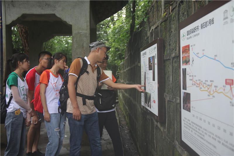 “蚕丛及鱼凫,开国何茫然……”伴随着队员们攀爬云崖栈道的脚步,一句句《蜀道难》在队伍中传递着,散向丹霞谷间的清风里。