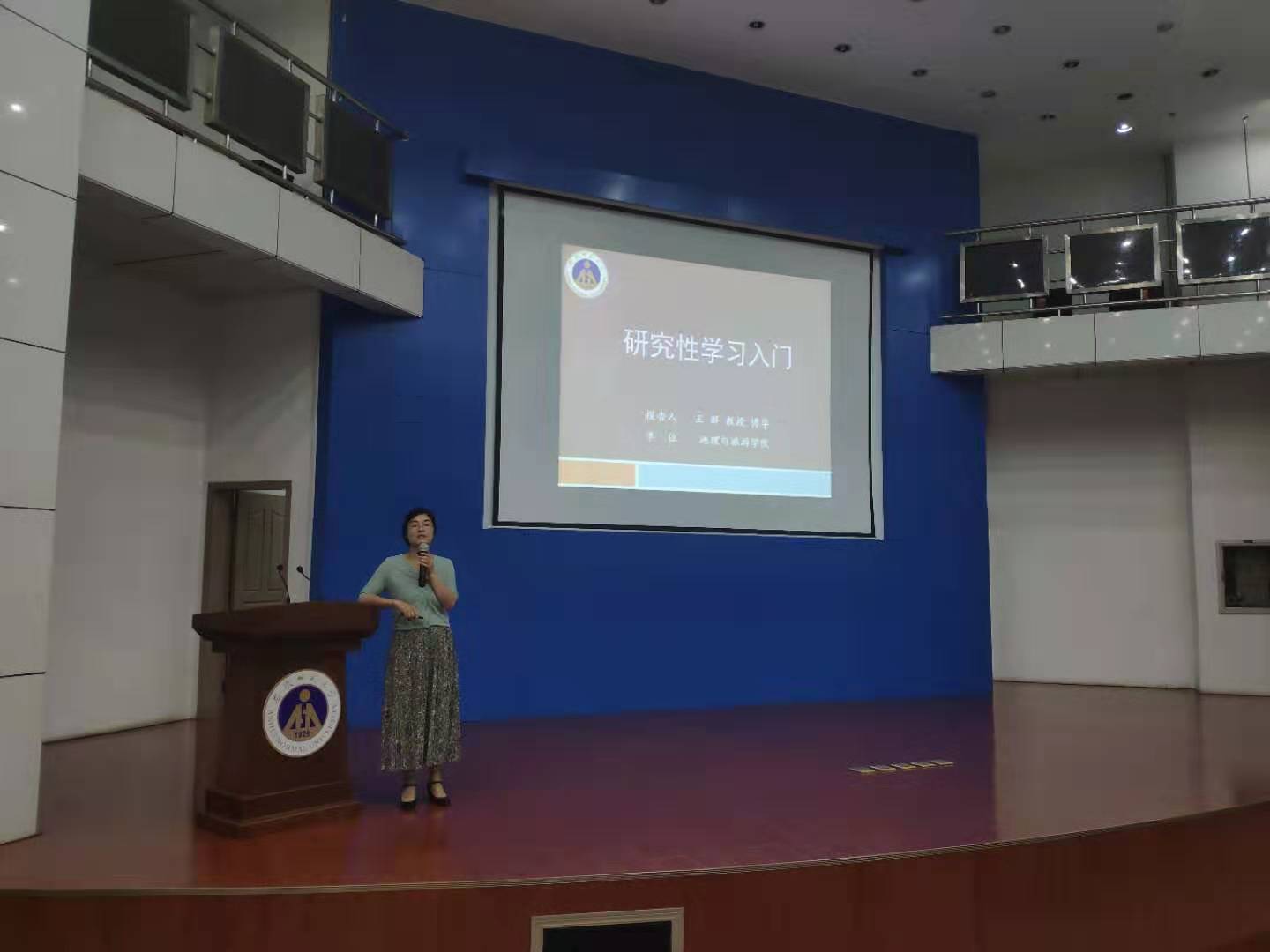 6月20日下午,地旅学院教授王群主讲的研究性学习培训会在敬文图书馆一楼报告厅举行,为实践学子开展了一场调研方法专题培训。会议中王群首先从研究性学习的概念、理念、特点、核心等方面让大家对研究性学习有了更加深入的了解。紧接着对于如何进性学习,王群在选题、资料获取、分析、对策上给大家给予了详细的指导。王群在会议的结尾还向大家讲解了研究报告、科研论文的构成,并告诫与会队长“善于观察,做一个对生活、行业、与专业的有心人;学会思考,做一个发现、分析与解决的理性人”。