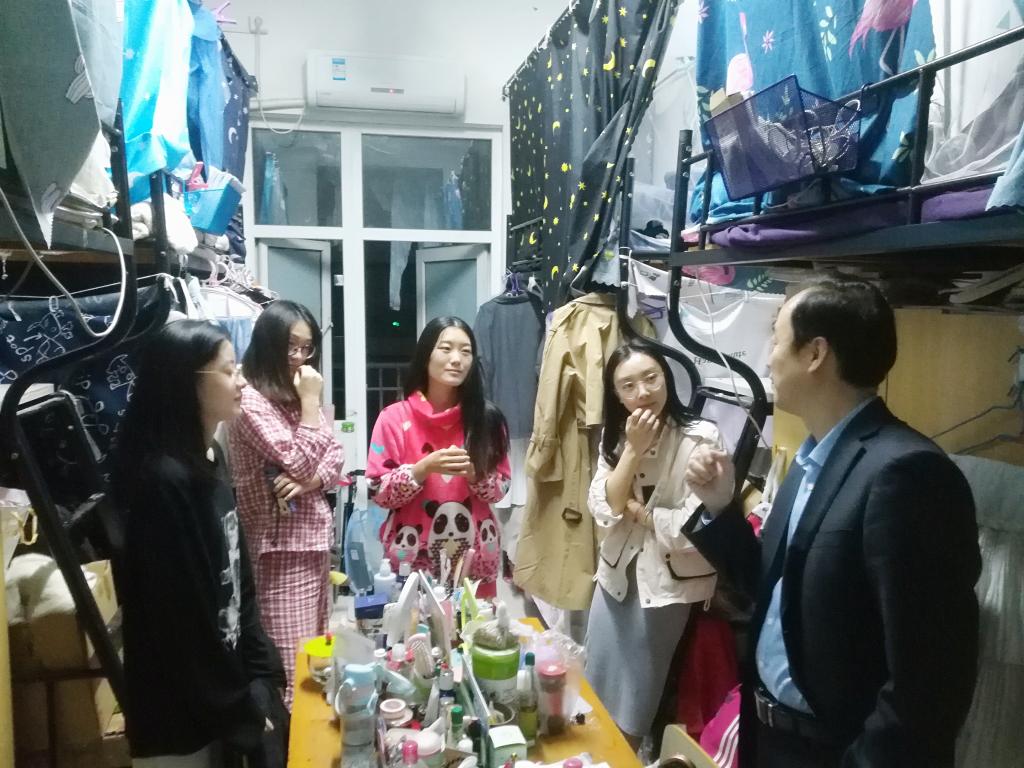 本次寝室走访,旨在突击检查同学们晚归不归情况,向同学们传达必须严格执行学校寝室管理规定,不能抱有任何侥幸心理。同时,乔静书记与同学们深入攀谈,并排查校园贷、套路贷以及宗教信仰情况。