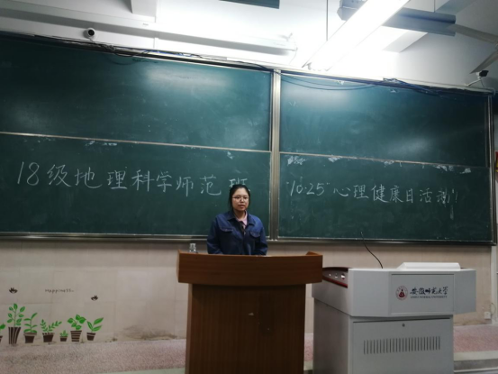本网讯(王阳 刘俊琪)尊重生命,你我同行!为进一步加强大学生心理健康教育,宣传普及心理健康知识,形成良好的心理健康氛围,2018级地理科学师范班积极参与大学生心理健康月活动,并于10月22日在4栋103教室开展以“尊重生命,你我同行”为主题“10·25”心理健康日活动。本次活动由班级心理委员陈冬阳主持,2018级地理科学师范班全体同学参与。