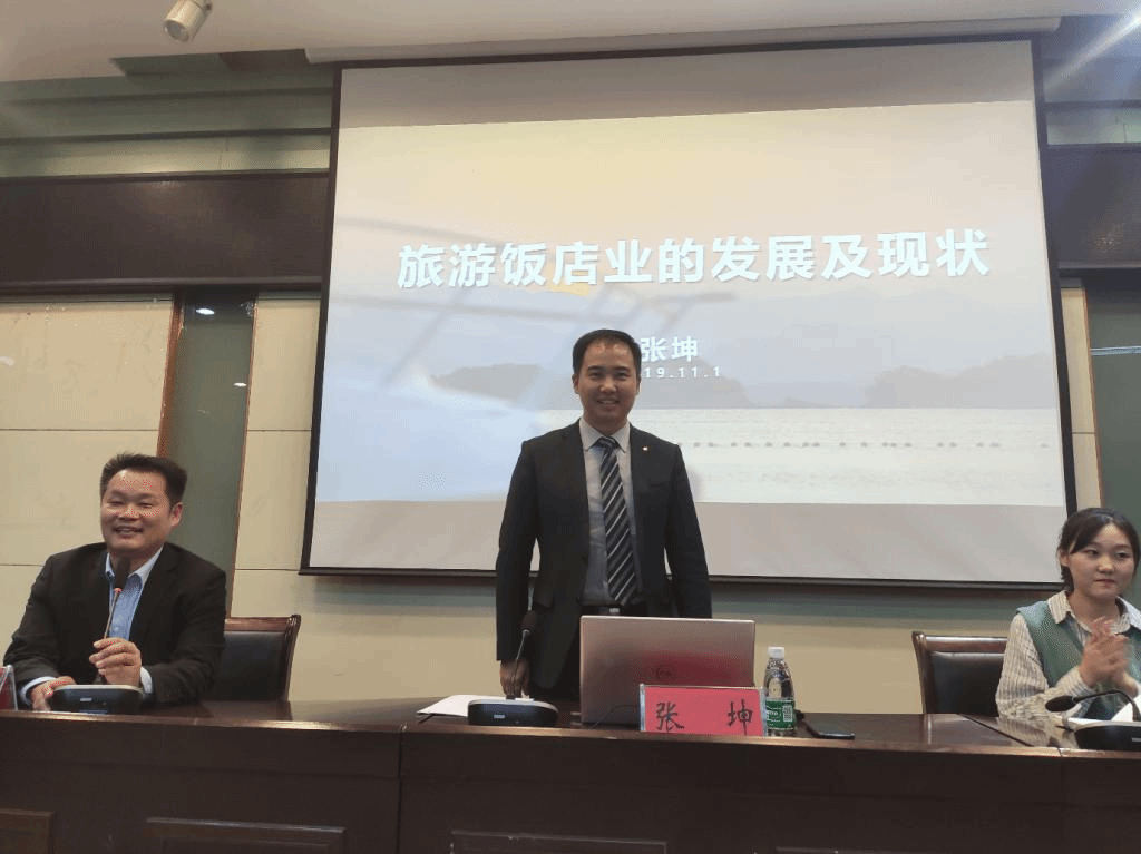 随后,张坤总经理从未来酒店业的机遇着手,向同学们详细介绍了开元集团的人才培养体系、品牌文化活动、企业社会责任,激发了同学们对酒店行业的兴趣,也使同学们对酒店行业有更深入、完整的了解。同时,张总也指出未来酒店管理岗位需求旺盛,为同学们今后职业发展指明了一条道路。