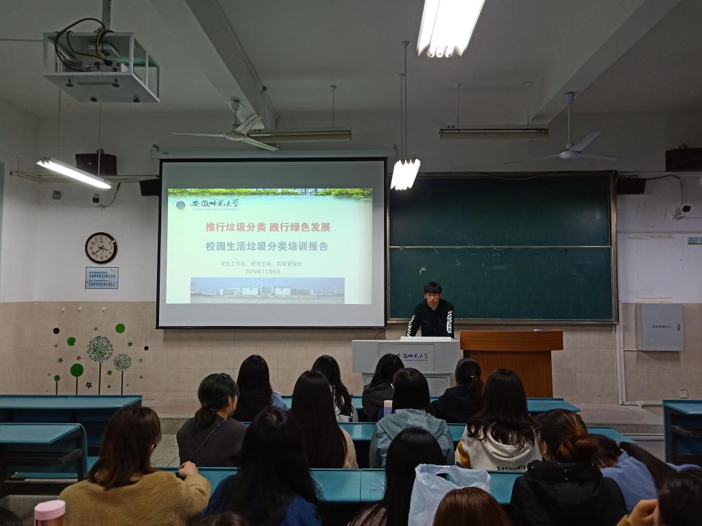 本网讯 孙雯杰)为贯彻落实学校垃圾分类工作落实,让同学们深入了解绿色环保的意义,增强环保意识。2018级地理信息科学专业于11月21日晚7:00在行知楼2040303召开校园生活垃圾分类主题班会,由汪岩主持,2018级地理信息科学专业全体同学参与会议。