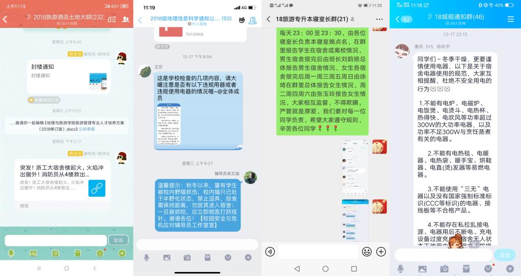 线上,学院团委带领各团支部通过班级官方微博、微信群、QQ群等方式全面展开安全知识普及,在重要节点进行安全提醒,并坚持“零点汇报”常态化、规范化,严守“四项禁令”;线下学院全体专兼职辅导员精心准备安全教育材料,多次开展规范用电、交通安全、防盗防骗、校园网贷、心理健康等主题教育活动,积极关注学生心理健康,努力营造建设平安校园的和谐氛围,增强学生安全防患意识。