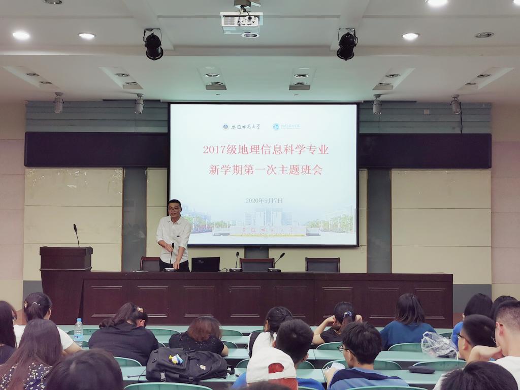 本网讯(地旅学院 章莹莹)为迎接新学期的到来,9月7日下午,2017级地理信息科学专业于必赢76net线路官网实验楼101报告厅召开了新学期第一次主题班会。班会由辅导员韩红豆主持,2017级地理信息科学专业全体同学参会。