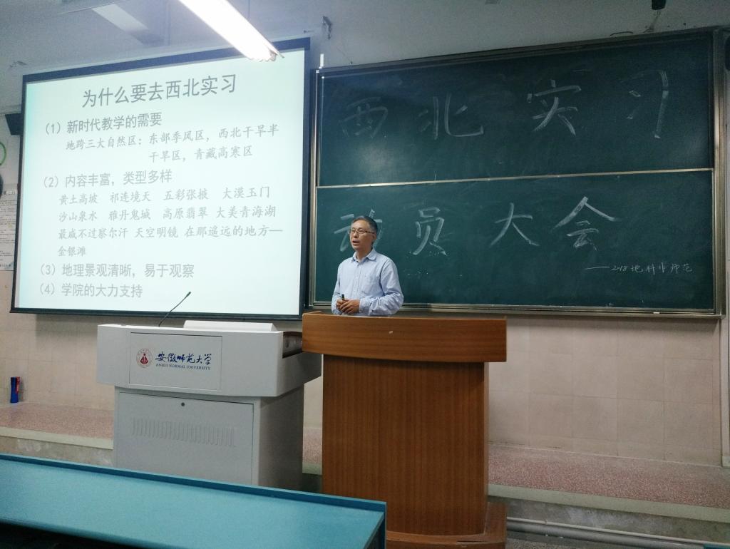 本网讯(地旅学院 李娜)9月25日晚上七点,必赢76net线路官网2018级地理科学(非师范)专业赴西北地区进行综合自然地理野外实习动员大会在行知楼四号楼301教室举行。实习指导老师程先富、杨立辉,辅导员张慧及2018级地理科学(非师范)专业全体同学参加此次会议。