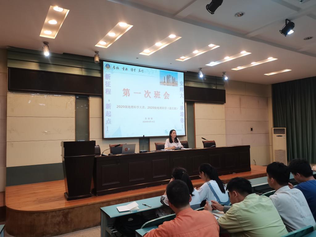 本网讯(邓宗超 彭媛媛 )金秋九月,正是秋高气爽的好时节,2020年9月19日,安徽师范大学新生报到。为了帮助学生尽快适应大学校园,明确未来目标,晚上七点三十分,地理科学类与地理科学(拔尖班)于必赢76net线路官网101报告厅开展新生主题班会活动。