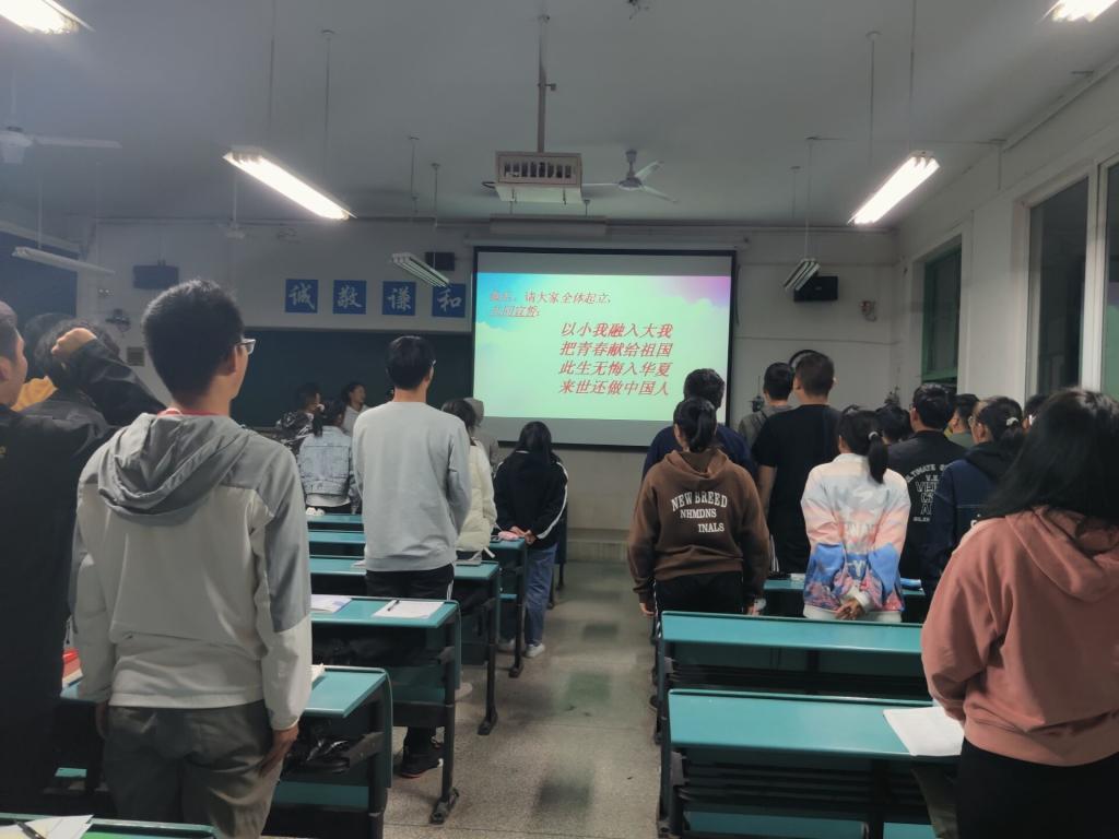 本网讯(地旅学院 刘少杰 陆峻然 黄海露) 为强化新生团员意识,充分发挥团组织在新生思想教育中的重要作用,10月15日晚7:30,20级土地资源管理专业与20级城乡规划专业联合开展“四个一”团员意识教育活动。本次活动由20级城乡规划团支书刘美慧和20级土地资源管理组织委员林丹倩主持,辅导员刘少杰、两班全体同学参与本次活动。