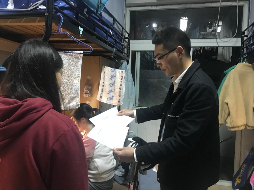 首先,着重检查了各寝室晨午晚体温检测落实情况。检查结果反映,大部分寝室都能按照要求落实体温检测并认真登记,但也存在部分寝室做的不够好,要求松懈的情况。韩红豆要求各寝室间相互学习,每位同学务必配合好寝室长工作,认真落实疫情防控常态化工作要求。秋季是传染病多发季节,韩红豆提醒同学们在准备考研求职的同时,要适当锻炼,增强体质,并注重卫生,寝室要及时通风,并提醒同学们如果遇身体不适,不要过分担心,及时汇报并就诊。