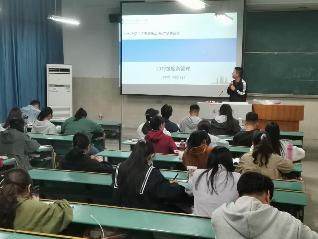 本网讯(2019级旅游管理 凡语馨)打开心灵的窗口,走出心理的孤岛。为了响应学校心理活动月号召,积极关注大学生心理健康,引导大学生建设健康心理,度过健康、丰富、多彩的大学生活,10月19日下午,必赢76net线路官网2019级旅游管理专业在行知楼一号楼教室举行心理健康活动月心理主题班会。班会由心理健康委员董宇同学主持,全体同学到会。