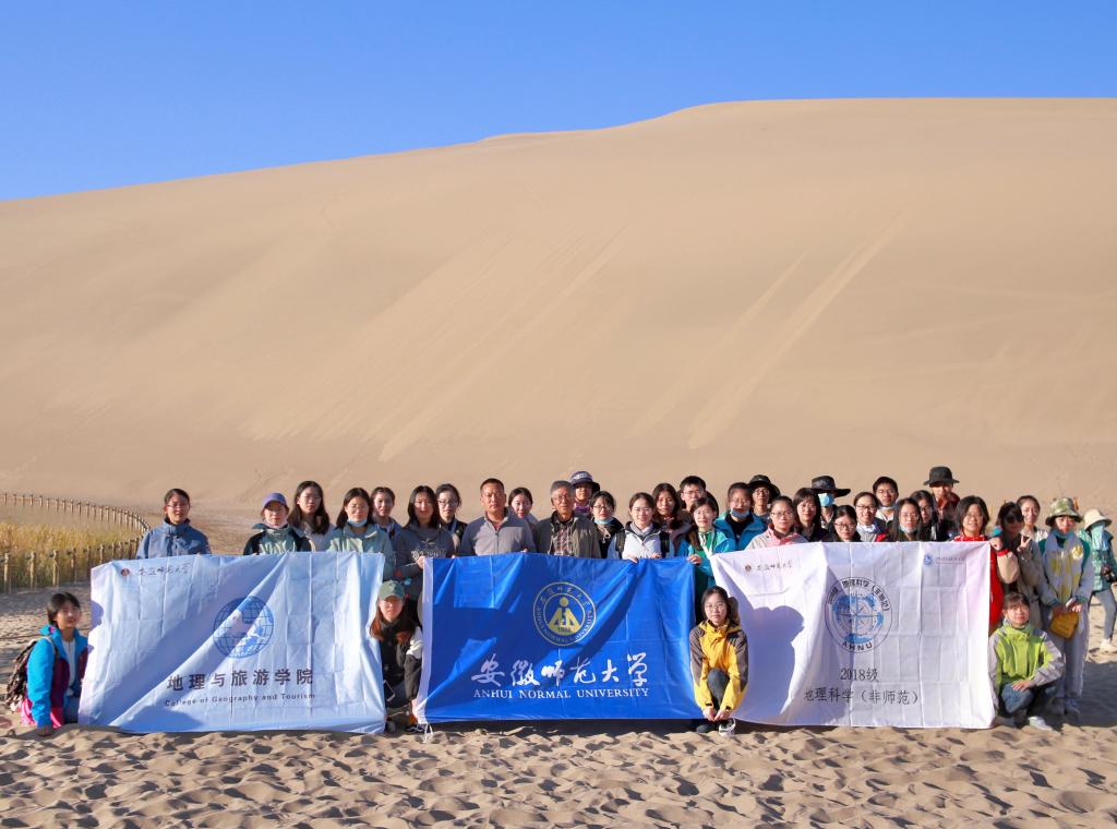 本网讯(地旅学院 李娜、王阳)为加深学生对西北地理环境的认识和理解,培养学生专业素养与实践能力,安徽师范大学必赢76net线路官网组织开展地理科学(非师范)专业西北自然地理实习,本次实习是安徽省属高校组织首次跨区域综合实习,对未来地理科学专业的发展具有开创性意义。在安徽省自然地理学重点学科负责人、博士生导师、教授程先富,副教授杨立辉,辅导员王阳的带领下,2018级地理专业(非师范)专业跨越五省前往青海、甘肃实习考察,本次实习历时11天,总里程达3000多公里。