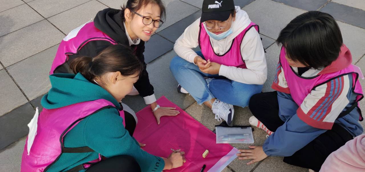 经过第一个游戏的预热,同学们热情高涨,踊跃参与到之后的分组团队建设中,各个团队设计了各自的队名、队徽、队歌、口号和队形。在此过程中,同学们积极参与其中,共同建设自己的团队,各组依次展示成果。一个个诙谐有趣的队名口号展示引发场下阵阵掌声,进一步拉近同学们之间的距离。随后以团队为单位参与游戏“极速六十秒”和“大海捞针”。游戏中同学们全神贯注、相互协作,一场趣味横生的活动正在花津校区达夫路段如火如荼的进行。活动开展过程中,教练多次组织各个团队分享感悟,同学们充分交流、相互了解。活动最后,辅导员总结并与同学们合影留念。