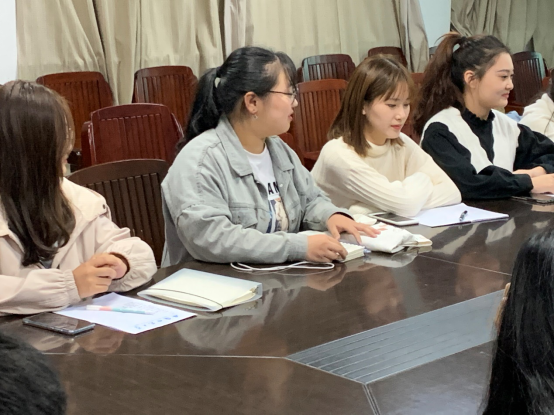 接着,全体班委按照顺序进行了近期的工作汇报并提出自己在工作上存在的不足。辅导员徐倩在听取了班委的汇报后,对班委近期工作表示一定的肯定同时对班委工作存在的缺失和不足提出了意见。接下来针对班级建设存在的不足,在场的班委积极发言提出了众多建议,并对后期班级工作进行了初步的规划。