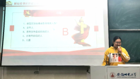 活动第二项,10月12日晚,2019级旅游管理专业全体同学在团支书程杨与班长吕聿炀等班委的组织下于行知楼教室开展了学习“四史”和新冠肺炎疫情防控知识竞答活动。活动首先邀请了张子琪同学作为代表分享自己对党章和十九大精神的领会。随后,在主持人程杨的引导下,同学们积极开展了“四史”和新冠肺炎疫情防控知识竞答,班级同学热情参与、准确作答,会上充满激动的气氛,时时发出热烈的掌声。