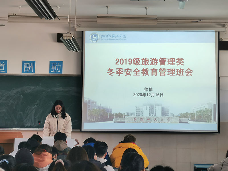 本网讯(地旅学院 贾燕妮)为增强同学的安全防范意识与避险能力,保障学生安全,20201225日,辅导员徐倩老师组织开展了旅游管理专业大类冬季安全教育管理班会。2019级旅游管理类专业的全体同学参加了此次班级例会,班会由徐倩老师主持。