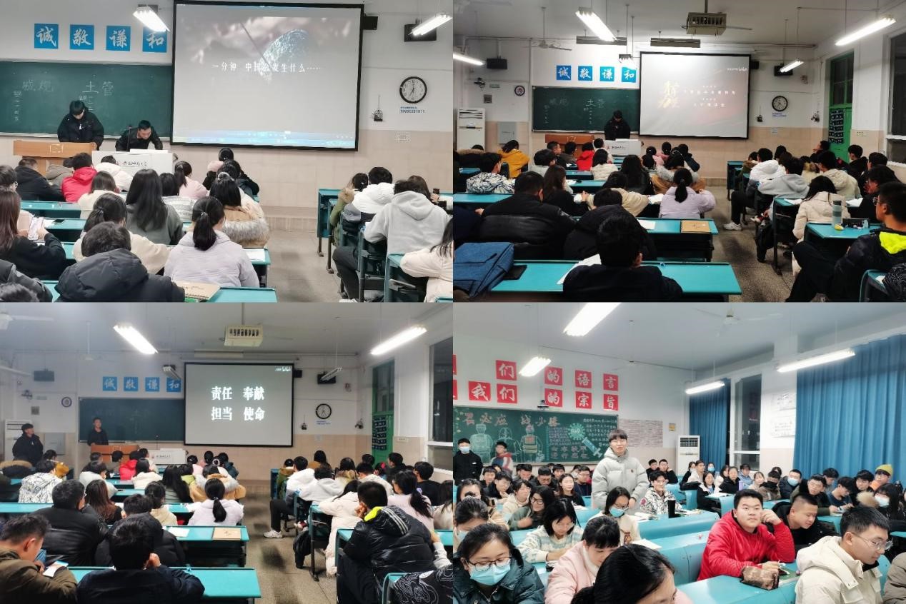 活动伊始,通过集体观看两段振奋人心的中国发展写实视频,大家共同见证新中国成立以来特别是改革开放以来我国取得的重大成就和优异成绩,民族自豪感和对祖国的感恩之情油然而生。视频结束后,同学积极发言,纷纷表示自己定会在实现中华民族伟大复兴的中国梦的新长征路上奋勇搏击!