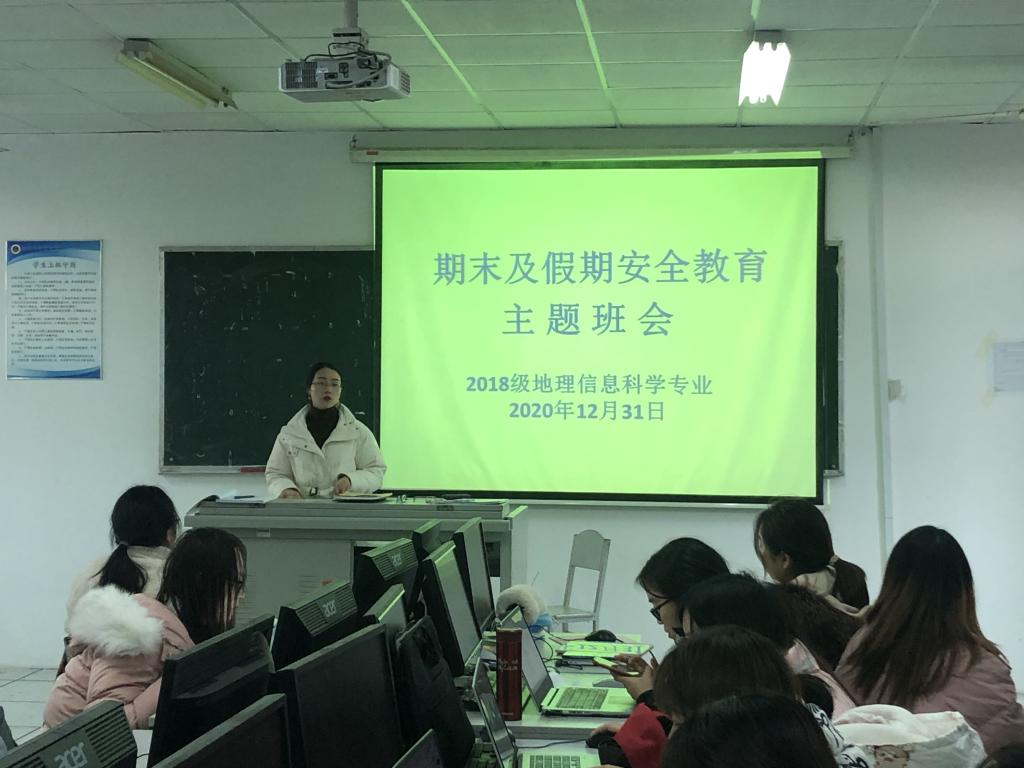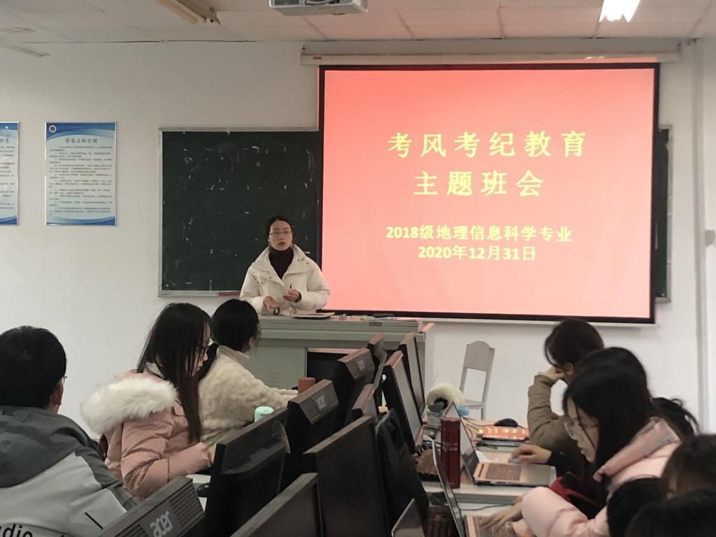 本网讯(地旅学院 孙雯杰 彭媛媛)为营诚信考试氛围,加强同学们寒假安全意识,2018级地理信息科学专业于2020年12月31日下午4:00在必赢76net线路官网实验219召开考风考纪教育暨假期安全教育班会。班会由辅导员彭媛媛主持,2018级地理信息科学专业全体同学参与。