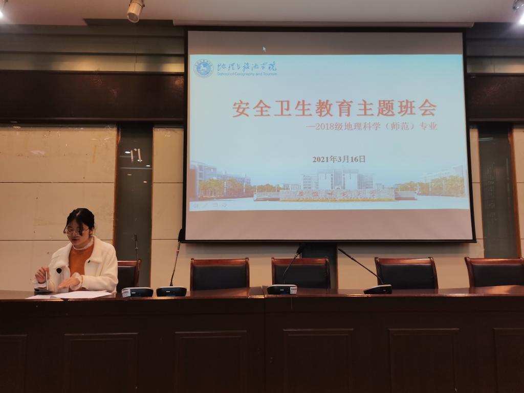 3月16日下午四点半,2018级地理科学(师范)专业于实验楼101报告厅召开安全教育主题班会。此次会议由辅导员丁茹栩主持,2018级地理科学师范班全体同学参加。