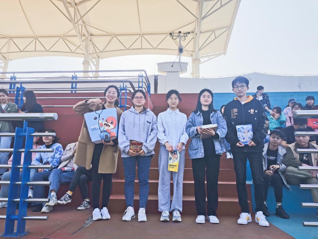 颁奖仪式在南体育场观众席举行,由孙林主持开展,徐倩担任颁奖嘉宾。获奖队伍依次上台领取奖品。徐倩就今日活动展开总结,强调户外拓展活动的重要健康和教育意义,鼓励大家春日积极走出宿舍,户外锻炼。本次活动在掌声中圆满结束。