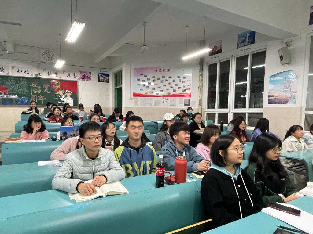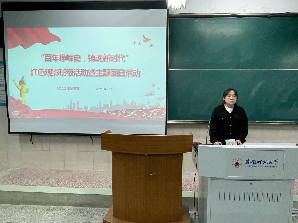 本网讯(地旅学院 赵佳慧 孙云峰)为进一步加强爱国主义思想教育,引导同学们不忘初心,牢记使命、铭记革命前辈和先烈。4月14日晚,2020级旅游管理专业组织开展了“百年峥嵘史,铸魂新时代”红色观影主题团日活动,班长徐菁组织同学们集中观看爱国主义题材优秀影片《八佰》。