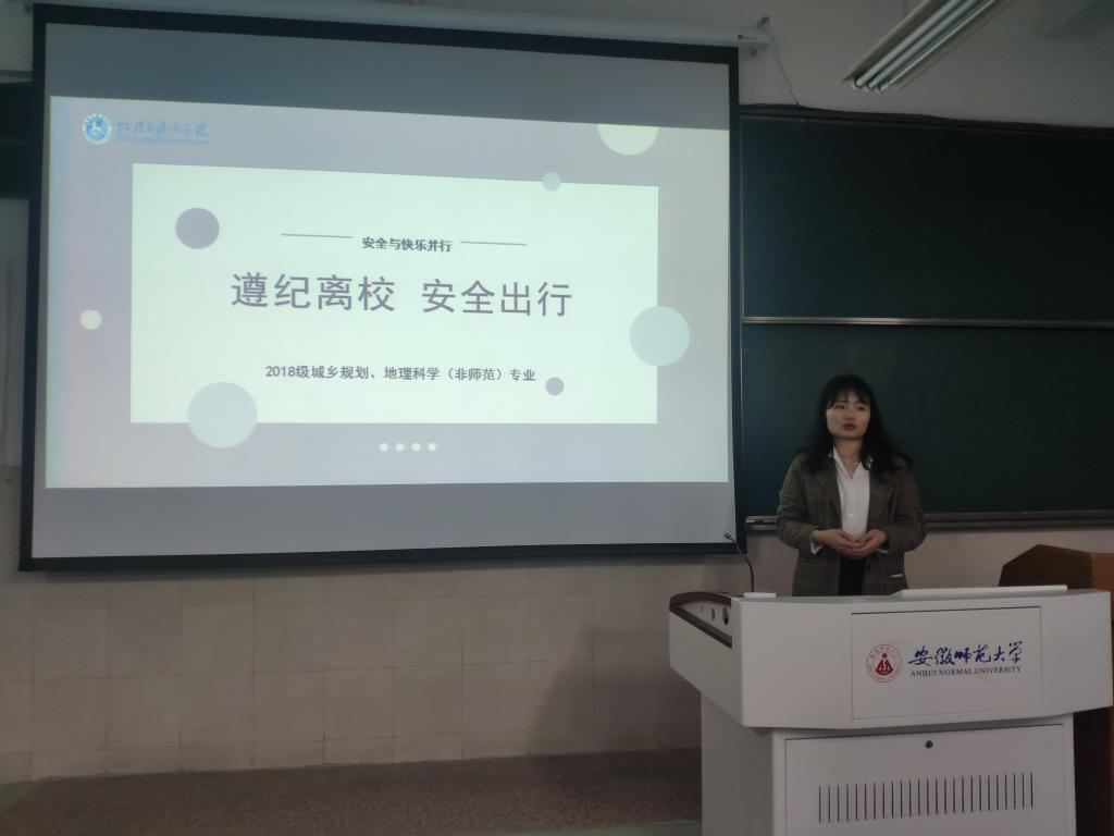 本网讯(地旅学院 潘爽)为增强学生假期安全意识,加强安全文明校园建设。2021年4月28日晚,必赢76net线路官网2018级城乡规划专业及2018级地理科学(非师范)专业于行知楼4号楼301开展“遵纪离校 安全出行”主题班会。会议由辅导员张慧主持,2018级城乡规划专业与2018级地理科学(非师范)专业全体同学参与。